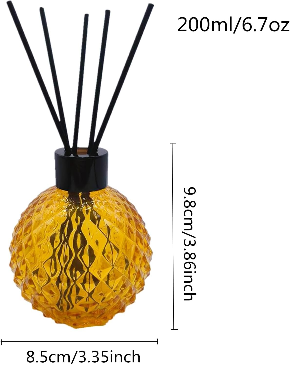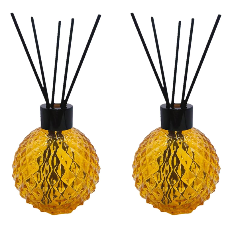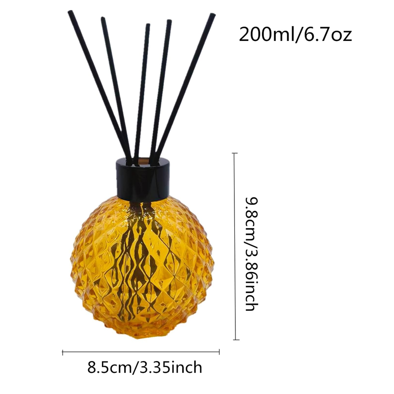 - Include : Empty Ball Glass Bottle 2PCS,2PCS stopper and black lid,10pcs black sticks and 2pcs White aromatherapy flower