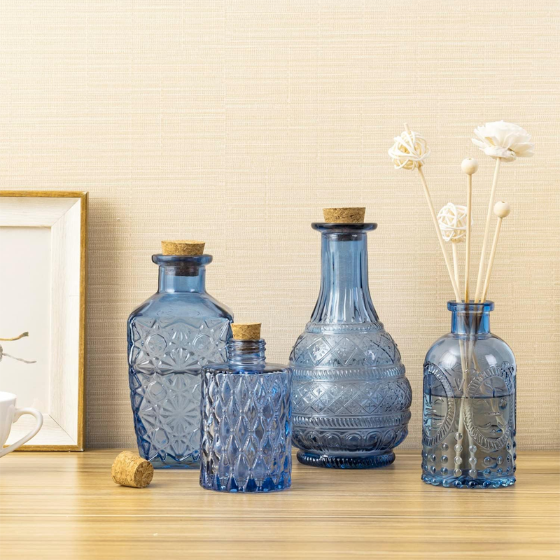 Reed Diffuser Bottles – Vintage Embossed with Cork Stopper Lids – 4-Piece Set